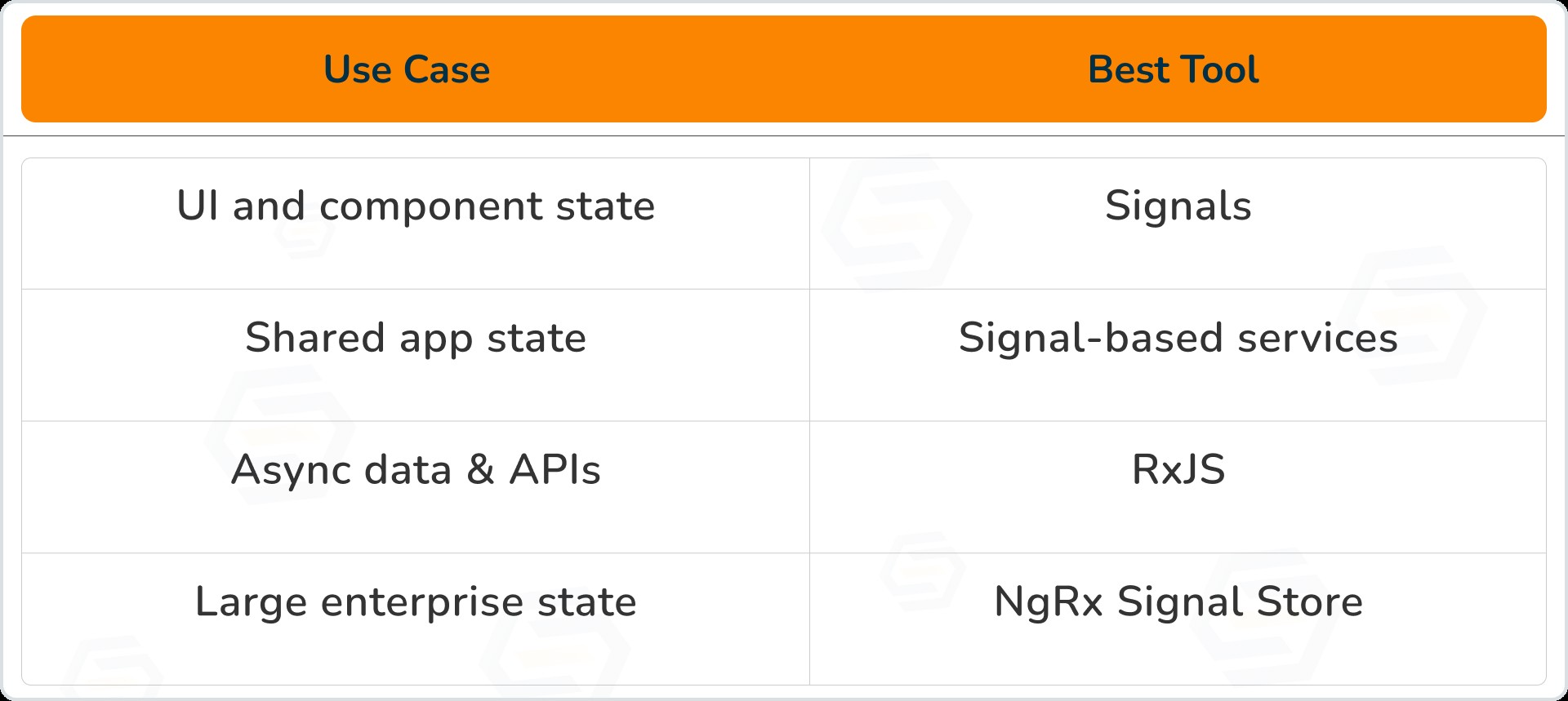 We use signals for UI and component-level state
